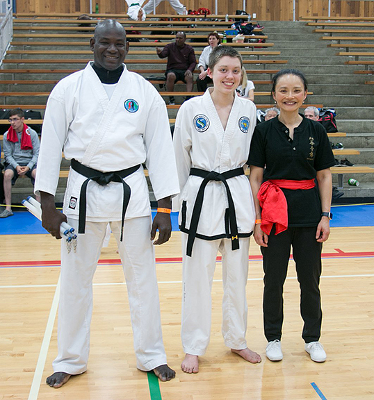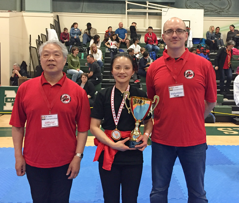 ![]() BC Open Martial Arts Championships 2017 Amy with her Adult Black Belt 18+ Traditional Forms division win and her Adult Black Belt Traditional Forms Grand Championship Trophy. |